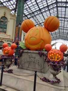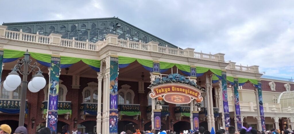 数十分かかって、ようやくディズニーランドに入場することができました。ディズニーランドは9月の中旬以降はハロウィーン時期ですので、飾りつけもハロウィーンを意識したものとなっていました。