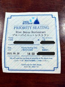「カリブの海賊」が終わった頃に、ちょうどランチの予約時間となりました。