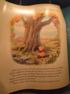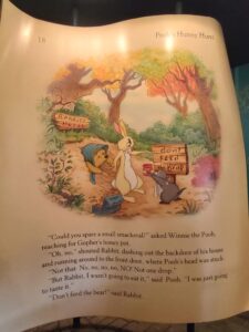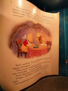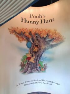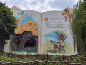 こちらのアトラクションも少々、待ち時間が長かったのですが、ところどころにくまのプーさんの絵本をモチーフにしたオブジェ?みたいなものがあり、待ち時間も楽しめました。