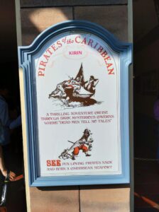 お土産を買ってもまだ時間が余ります。時間がもったいないなぁと思っていたところ、「カリブの海賊」の待ち時間が20分という短さを知り、空き時間を利用して、予定にはない「カリブの海賊」を楽しむことにしました。