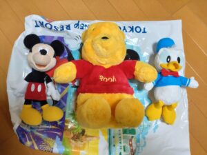 買った人形は、私のお気に入りのくまのプーさんです。とてもふわふわした素材で出来ており、猫もきっと喜んでくれるのではないかと思っています。あと、迷ったのですが、ディズニーの象徴といえばミッキーマウスとドナルドダックだと思ったので、この二つも購入しました。