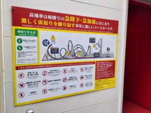 なお、ZOKKONも以下の画像にあるように、やはり激しいコースターで、注意書きの看板がありました。