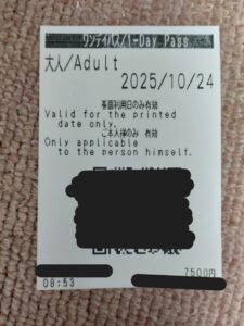 入り口のすぐそばには券売機があり、そこでクレジットカードでワンデイパスを購入しました。支払方法は現金かクレジットカードでした(但し、富士急ハイランド内に入園すれば、電子マネー等も使えました。)。私はもちろんポイ活も兼ねてクレジットカード払いです。値段は7,500円でした。